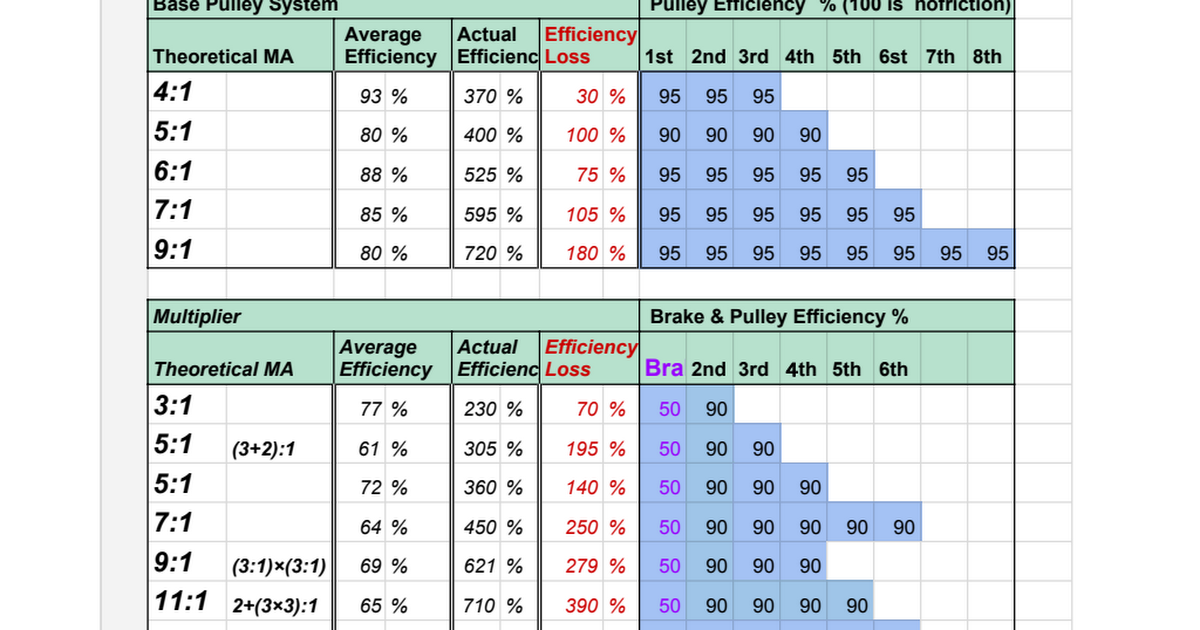 プーリーシステムの数値が出せるサイトやアプリはあるのですが、簡易というかデタラメしか存在していません。例えば、プーリー効率の平均値に倍率とブレ―キの効率を掛けるという計算です。