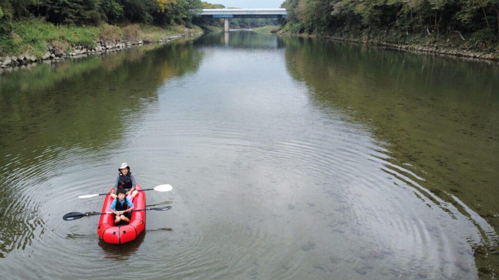 二人用のタンデムタイプのパックラフトを買ったので子供と乗れます。大人+子供2人や大人二人+子供もギリギリokです(一人でも普通に使えます)。子供はすぐ漕ぐのをやめてしまいますが、楽しいのは間違いない。カヌーなんてどこが楽しいの!?と文句を言いながらも明らかに楽しんでいます。表情を見たら楽しんでいるのは丸わかり。網や水鉄砲、タコ眼鏡を持ち込んで遊びながらの川下りです。