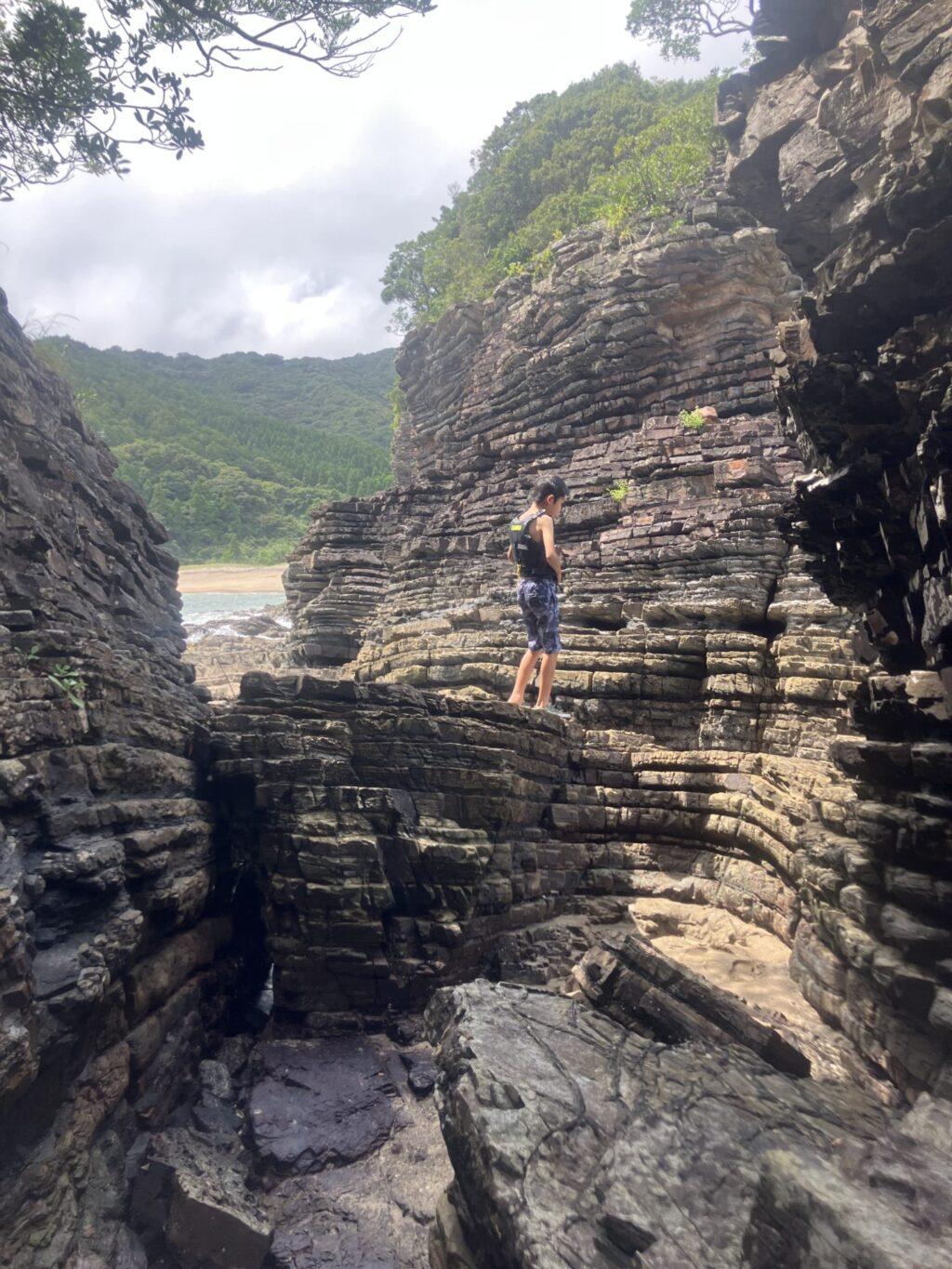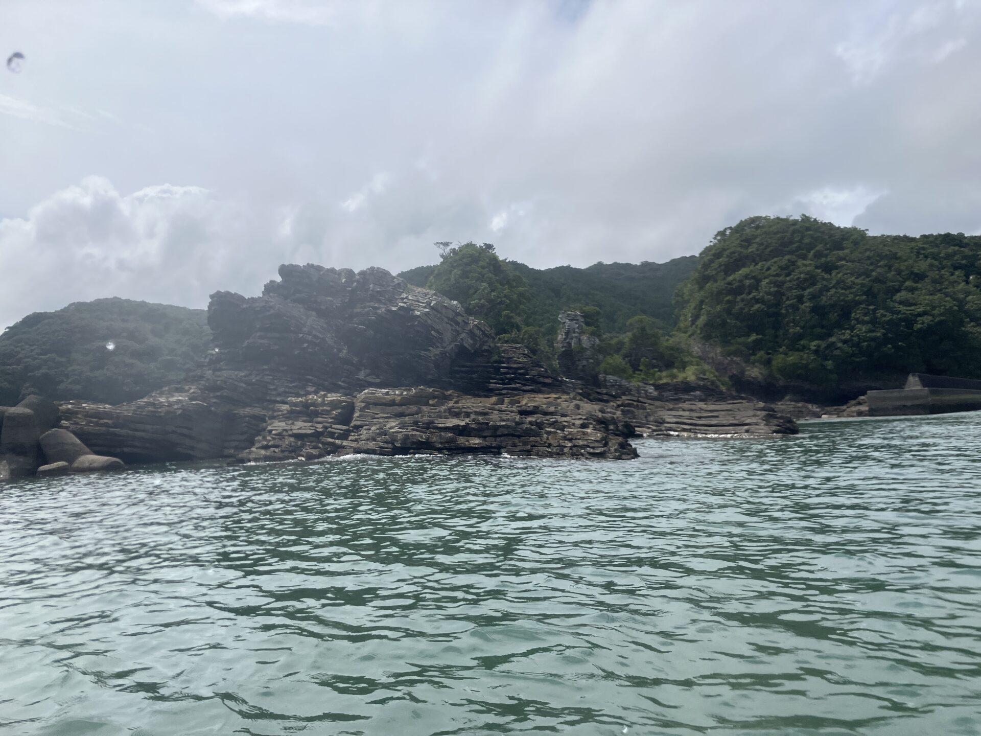 火山由来の特徴的な岩があったので上陸。素晴らしい造形美だった。
