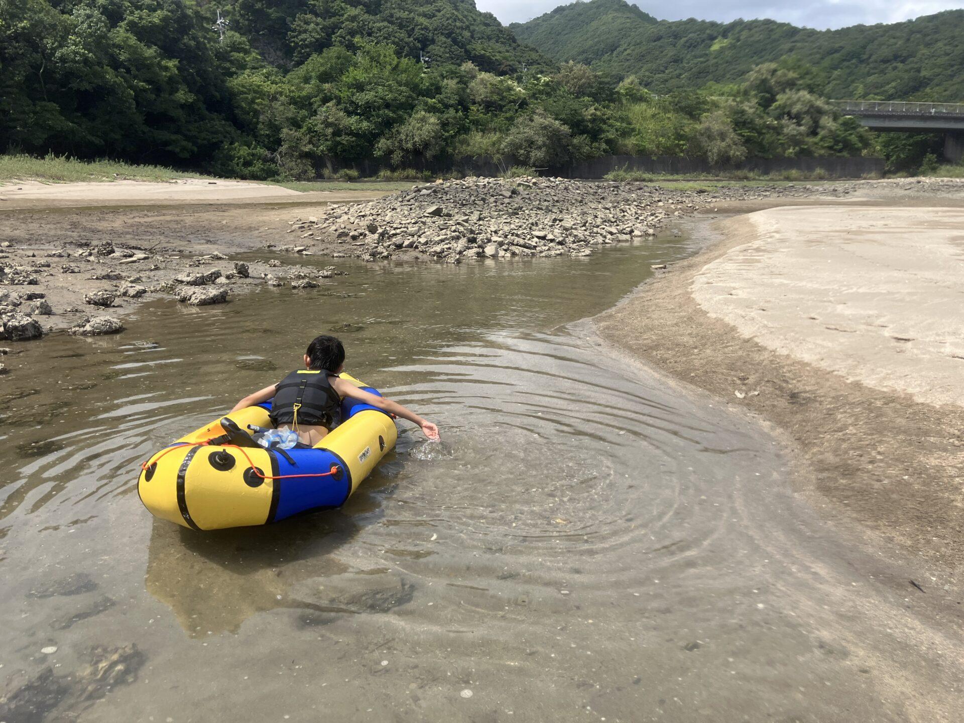 夏休みは宮崎の海と川に行くのが定番となっています。パックラフトで浜辺から下降を遡って干潟で魚探しをしてきました。時期は8月。