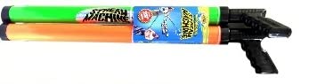 ストリームマシンは力がないと飛距離が出ません。中学生以上なら正常に使えます。小学生だと腕力が無いので飛距離が出ませんが、使用自体はできるので楽しく遊ぶでしょう。スペックでは21mとなっていますが、かなり気合入れても10mくらいしか飛ばない気がします。斜めに放出したら家の一階の屋根には余裕で到達しますが、二階の屋根の端っこはギリギリ到達可能って感じです。